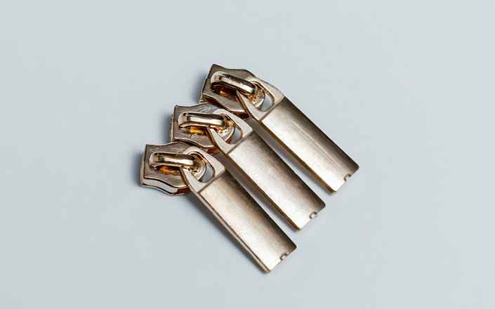 在服装款式设计上,不光拉链的长度、材质要考虑,拉链头也是很要的设计元素。金属头、皮革头、花式头等,有些品牌包袋或品牌服装门刻有品牌LOGO…